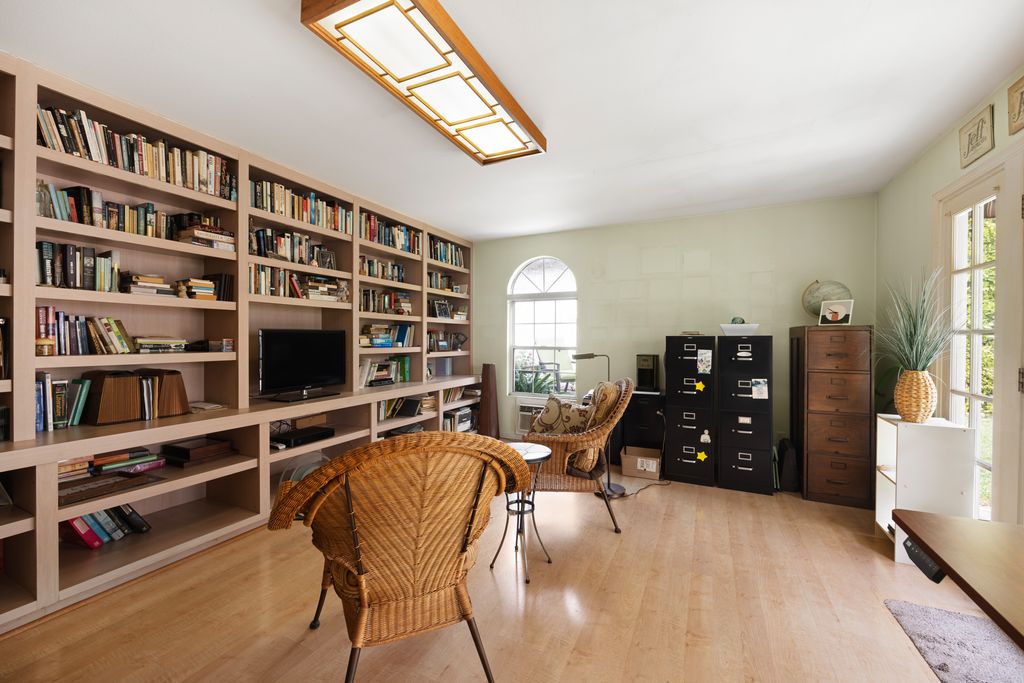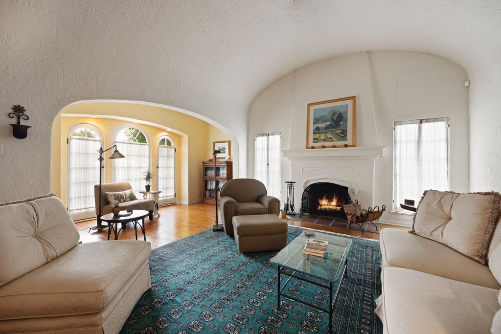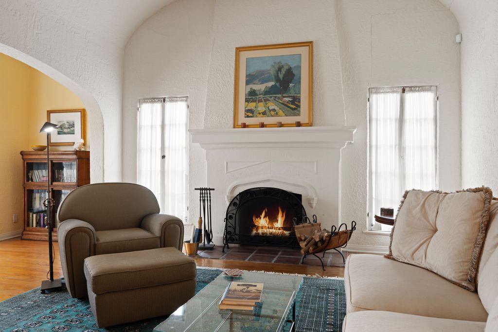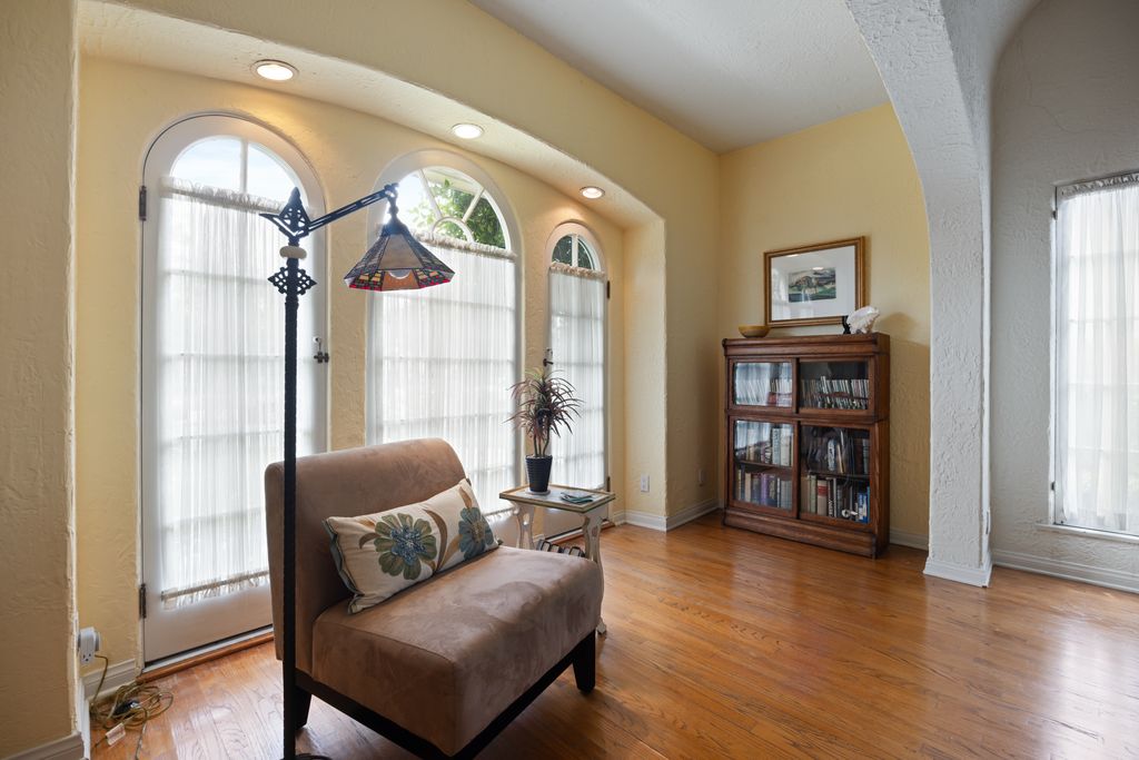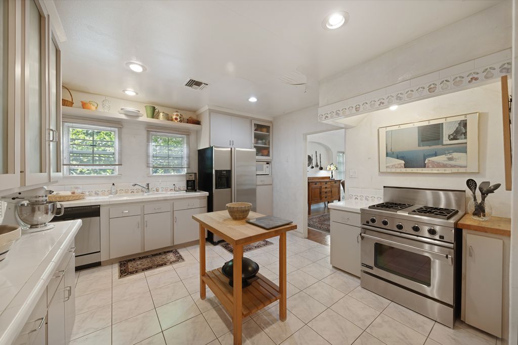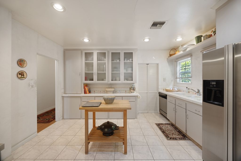 A grand formal sitting room welcomes you with a soaring domed ceiling, a striking fireplace, and beautiful original arched windows that bathe the space in natural light. The spacious kitchen provides a wonderful footprint for updating, while the detached office connected to the garage is perfect for work, art, or a quiet retreat.
